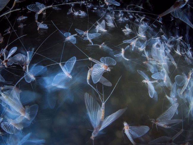 Danube mayflies, also known as the ephoron virgo, are spectacular insects that perform an intricate choreographed dance during their mating season. This endangered water insect returned to the river Danube in 2012, contributing to the improving water quality of the rivers of Middle Europe.