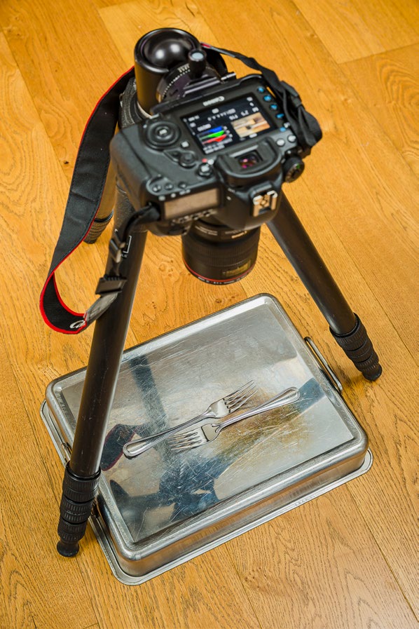 You can shoot a still-life anywhere. Here, the battered back of a roasting tray placed near a kitchen window makes for an easy ‘home studio’.