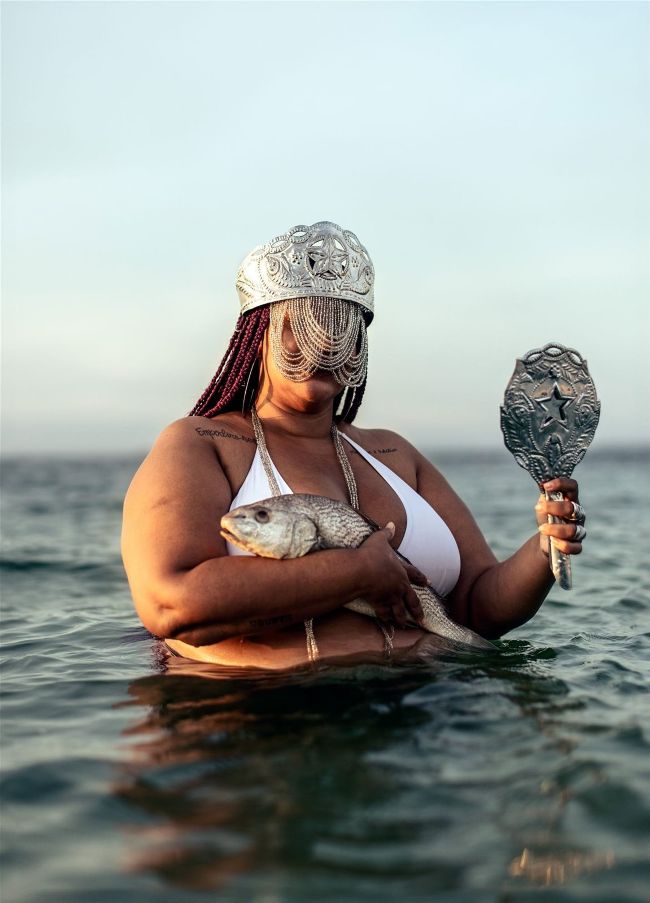 A portrait of Samara Azevedo representing Yemanjá, the Yoruba Orixá, or deity of the seas. In her original form, Yemanjá is a voluptuous black woman who symbolises nurturing but, because of racism and religious intolerance in Brazil, her image has been transformed into that of a slender white woman. However, many young Afro-Brazilians are working to fight this prejudice by restoring Yemanjá’s image. Series description: M’kumba is a project that illustrates the resilience of Afro-Brazilian communities in the face of intolerance. In 300 years, nearly five million African people were brought to Brazil but, until 1970, Afro-Brazilian religions were criminalised and they still face prejudice and violence. Although 56 per cent of Brazilians are of Afro descent, only two per cent identify as Afro-religious due to fear of persecution. Gui Christ’s intimate imagery challenges prejudice by celebrating these spiritual traditions as a vital part of Brazil’s cultural identity.