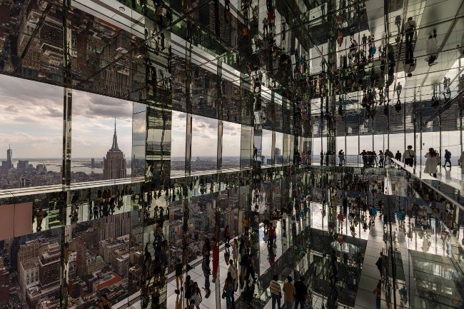 The Summit One Vanderbilt is the world’s most immersive observatory experience – a glass box observatory filled with reflective surfaces cast against huge windows that showcase the New York skyline, including the Empire State Building in the foreground. The $3.3bn development was designed by architect Kohn Pedersen Fox Associates.