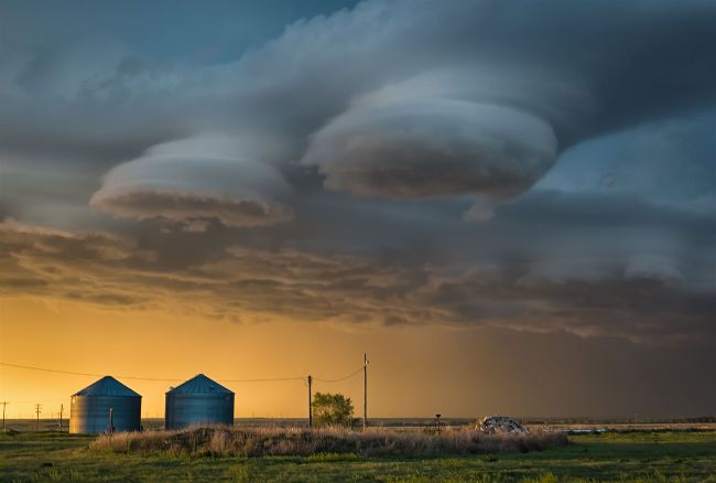 Almost every May, Stavros takes a trip to the USA to chase storms. On this particular day, he and his friend were following a supercell storm that couldn’t quite get its act together and produce a tornado. They were debating if they should keep following the storm when they noticed that it was forming two beautifully shaped clouds. It reminded Stavros of the smooth, laminar appearance of lenticular clouds.