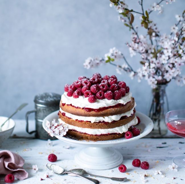 Using a glass vase was a great move too, as the material makes the prop feel lighter, making the cake the heaviest – therefore the most important – part of the image. Additionally, the cake’s warm colours contrast with the rest of the scene, ensuring that the viewer will notice it right away.