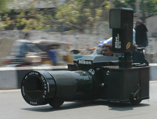 This Nikon-shaped car can travel at up to 25mph and was made by Sudhakar Yadav, whose wacky invention can be seen on display in a museum. But where?