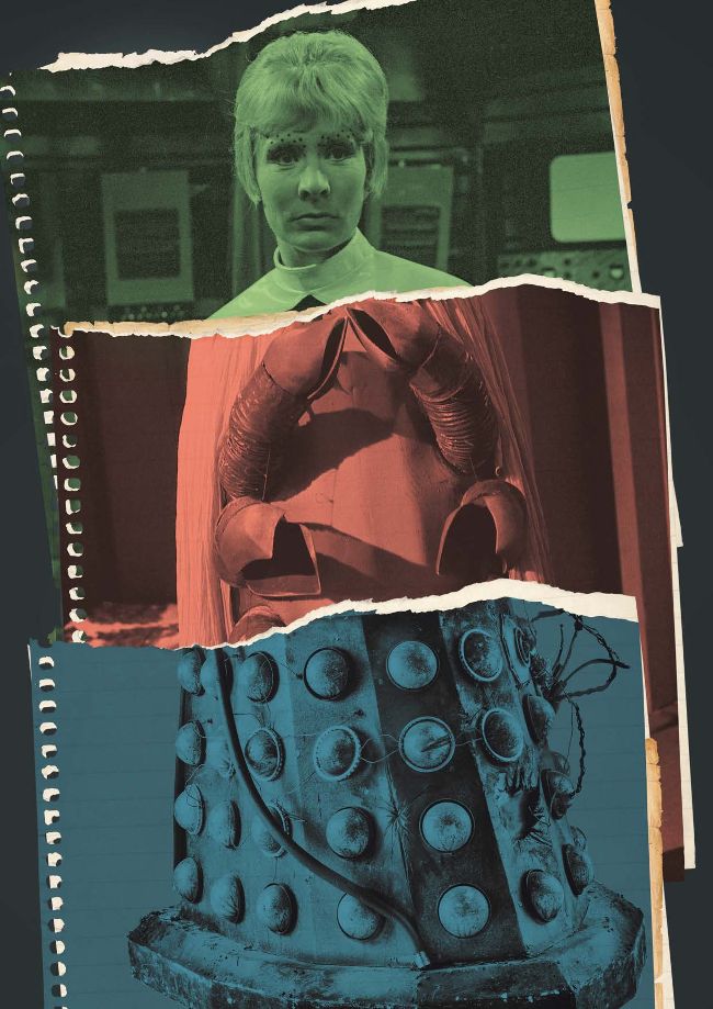 from top: Maaga (Stephanie Bidmead) in Galaxy 4 (1965), Alpha Centauri in The Curse of Peladon (1972); ‘Rusty’ from Into the Dalek (2014).