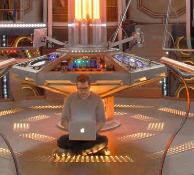 Graphic designer Matthew Clark on the set of the TARDIS.