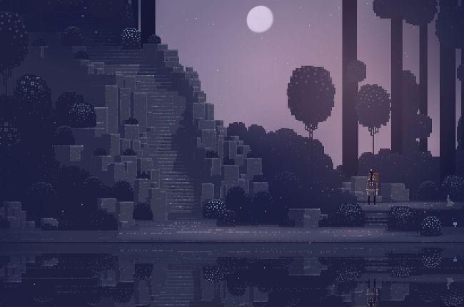 Artist Craig D Adams first started listening to fellow Canadian singer-songwriter Jim Guthrie when he bought his 2002 album Morning Noon Night. Guthrie’s second release on independent label Three Gut Records, it featured a number of tracks created using MTV Music Generator on the original PlayStation. Adams, who’d already had his distinctive pixel art published in magazines, sent out a series of mailers to various art directors, and passed some of his work to Guthrie’s label. In return, Guthrie sent Adams a CD of unreleased tracks, including one called Under A Tree, a song that would later become a centrepiece of Sworcery.