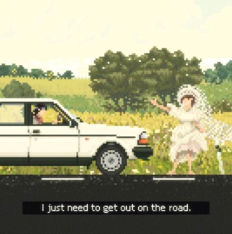 Taking the wheel of the latest model, we now feel like we’re entering Roguelike territory. Yet, while there are similarities, Josef Martinovsky, the other half of YCYJ, tells us that the duo wants to avoid the mischievous difficulty that defines the genre, and the bigger inspiration here is tabletop gaming. “We actually made the game as a card game,” he says, “and then we started looking at it in a different way, more like an RPG.” From there it was a question of translating elements of a road journey into systems more usually associated with fantasy combat, turning your choice of car into your character class, hitchhikers into party members, and snacks and tools into potions and consumables.