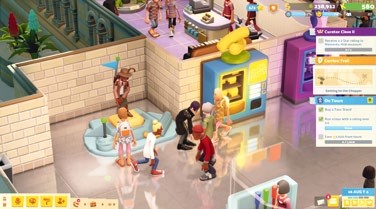 Two Point Museum is less individual-oriented than Two Point Campus, but tending to the desires of visitors still plays a big role. Certain exhibits attract different types of guests, such as green-clad plant lovers and clowns who love to goof around with your tropical flower’s balloon blooms. Guests also respond to different stimuli. Brainy professors and sombre goths have zero time for fancy displays, being solely interested in how much knowledge your museum can impart. Perhaps the best new faces, however, are children, interested only in the buzz your museum can generate, which you can leverage with interactive displays such as a stegosaurus-themed playpen, guaranteed to get them flocking in their freshly bought dinosaur onesies.