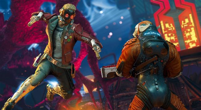 Yet there is plenty to admire here, too. The vibrant palette sets this apart from most blockbusters, as does its sense of humour: the wisecracks here have an edge to them, with the Guardians frequently bickering among themselves, delivering the sort of withering putdowns you’d only ever aim at your closest friends. Granted, the constant shouts during combat could well grow grating over a 15-hour adventure. Yet they’re useful, too. As Star-Lord you fight directly, combining your twin blasters with melee attacks. At the same time, you also command your fellow Guardians, choosing between four moves for each and working out which ones combine to most devastating effect. Launch an enemy with an uppercut, and Drax’s drop-kick will soon knock the wind out of them. Invite Rocket to leap into Groot’s harness, and he’ll become a mobile turret of sorts.