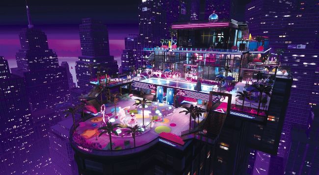 We join Nevada as she attends a rooftop party thrown by the self-obsessed artist Erik Pop. Warholesque prints of Pop hang on the wall as we walk past pink flamingos, only to find water fountains modelled in the artist’s likeness. Every detail of this vibrant world is a love letter to the ’80s, from Nevada’s impressive shoulder pads to the oddly catchy Euro disco pounding through the speakers. Ostensibly hired by Pop to document the event, we have our eyes on a different prize: the crystal skull displayed beside a swimming pool.