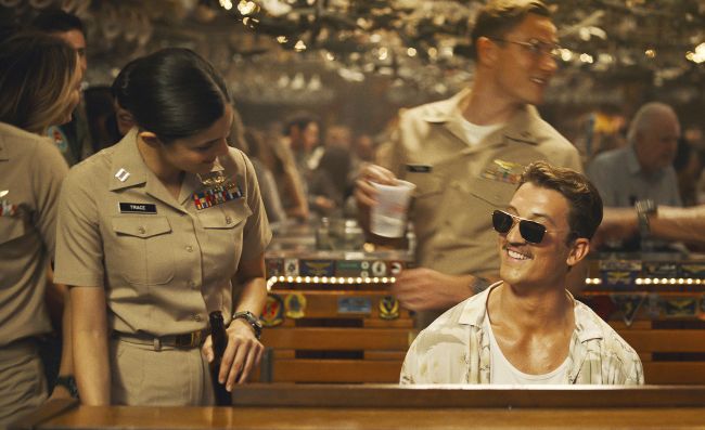Rooster (Miles Teller) impresses Phoenix (Monica Barbaro) with his ‘Great Balls Of Fire’;