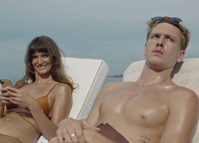 Harris Dickinson as insecure supermodel Carl, on the cruise from hell.