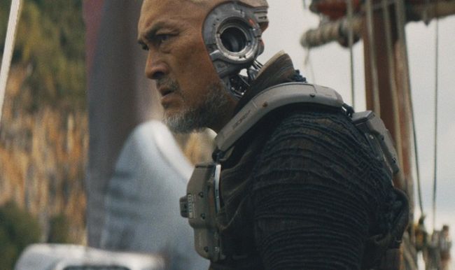 THERE IS TECH to die for in The Creator. On every level. Boasting some of the best sci-fi design in years, there is personality to match each invention — most of which is programmed to kill. We have robot cops, 50 per cent humanoid, 100 per cent total bastards, running amok, stumbling about witlessly when sliced in half. There is the NOMAD, America’s mammoth spaceship, a foreboding, godlike presence, a bird of prey