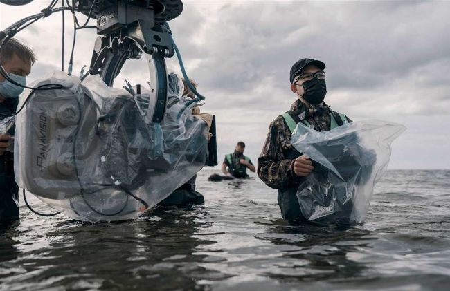 Water, water, everywhere… Director Robert Eggers braves the elements while making his new movie.