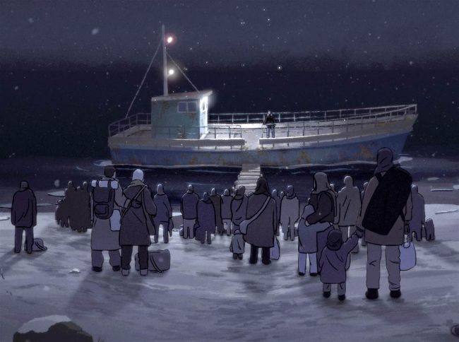 REFUGEE STORIES HAVE a tragic, crushing universality about them: dank cargo-holds and shipping containers, thuggish human traffickers, the desperation of families torn apart by war and persecution. But in the telling of one such story — that of Amin Nawabi (Daniel Karimyar, Fardin Mijdzadeh), an Afghan academic settled in Denmark but still shaken by the escape he made during his teenage years — documentary filmmaker Jonas Poher Rasmussen has somehow found a way inside these horrors that’s truly unique. Flee jolts to life via swirling hand-drawn animation, which is not what you’d expect. It’s also a memory play, a therapy session and, most subtly, a coming-out comedy. Unspooling like a hush of secrets about to be disclosed after decades, Flee is a stirring, haunted reminiscence like no other.