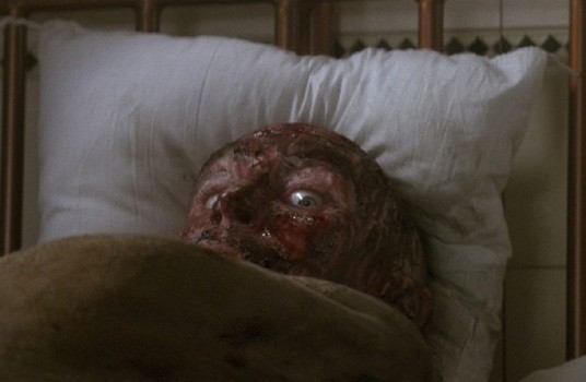 “Pine-tree air fresheners! We went to a bunch of different companies, because we wanted 10,000 of them or whatever. They had to be hanging all over the place. We ended up printing our own because everybody felt we would all have splitting headaches after two days of shooting in an environment that smelled like pine freshener. Sloth was, again, a harrowing race against the clock, because [special-effects make-up maestro] Rob Bottin needed so much time to put all those bedsores in, deal with the fake arm, all that stuff. I think the actor came in for make-up at midnight and we rolled at 6 am.