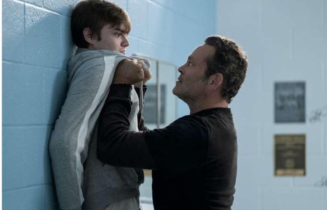 The opening sequence sets the tone for Freaky right from the off, as Vaughn’s Blissfield Butcher stalks and kills a bunch of teens in incredibly innovative ways (example: ripping a tennis racquet apart and ramming both ends into a skull). Splatter abounds, and while there are jump scares aplenty, it’s clear that it’s being played for laughs. “Michael