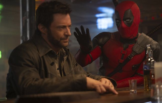 Deadpool drives Wolverine (Hugh Jackman) to drink;