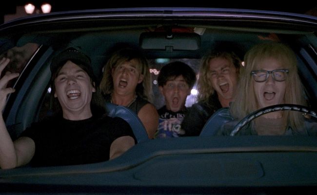 Wayne Campbell (Mike Myers), his best friend Garth Algar (Dana Carvey) and three of their chums are driving through Aurora, Illinois, at night. “I think we’ll go with a little ‘Bohemian Rhapsody’, gentlemen?” says Wayne, popping a cassette (ask your grandparents) into the stereo. As Queen’s mid-1970s hit blasts out of the speakers, they all sing along in their finest falsettos. Eventually it gets to Brian May’s crunching guitar solo, at which point the fab five headbang in unison to the music, and that’s when Wayne’s World became a cultural phenomenon. It’s a moment Myers — who also wrote Wayne’s World — pulled from his teenage years growing up in Toronto. “At one point I said, ‘I don’t want to make this movie if it’s not ‘Bohemian Rhapsody’,” he has recalled.