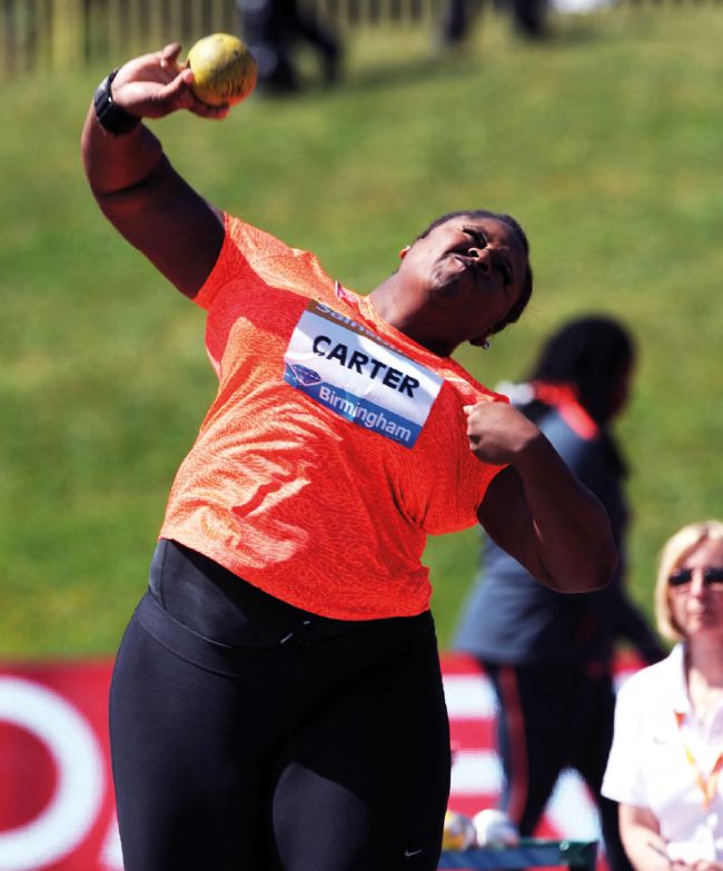 Carter still led with 19.31m as the final four each had their last throw. Anita Martin of Hungary found a big one and a national record, 19.33m, to snatch the lead from Carter. But Carter, with the last throw of the contest, regained the lead with a worldleading 20.21m.