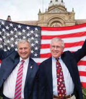 Cllr Ian Ward, deputy leader of Birmingham CC, (left) and Duffy Mahoney, chief of sport performance for USA Track and Field, in front of the Council House in Birmingham
