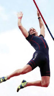 World record-holder Renaud Lavillenie of France vaults against world champion Shawn Barber of Canada. European champion Robert Sobera of Poland, GB’s Luke Cutts and Germany’s Raphael Holzdeppe.
