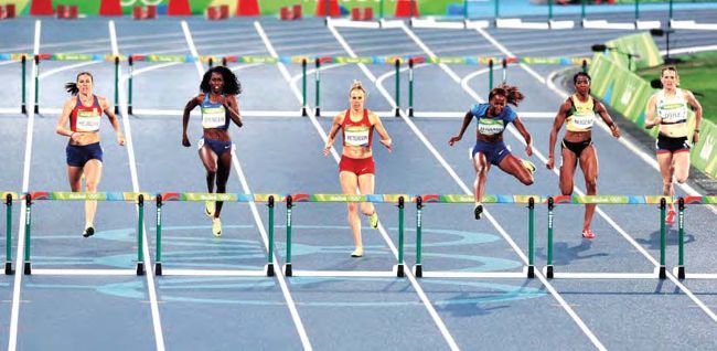 The race got under way just as rain started to fall, but the 26-year-old 2013 world silver medallist didn’t let the wet conditions trouble her as she dominated the final to continue USA’s success in women’s hurdles at these Games.