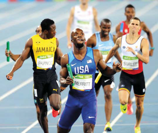Anchored by LaShawn Merritt, America stormed to victory in 2:57.30 ahead of Jamaica and 2012 champions Bahamas, but the big talking point was the DQ of GB after they had beaten Belgium and Bahamas to win their heat.