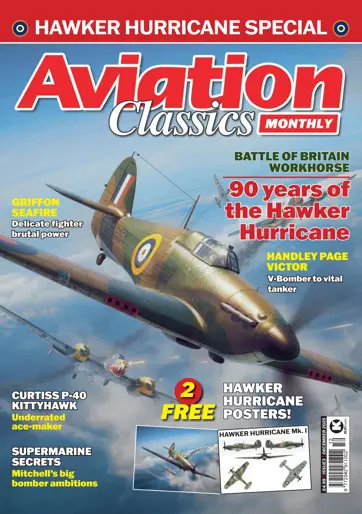 December 2025 This special issue of Aviation Classics marks 90 years of the Hawker Hurricane with in-depth features on its development, wartime service and lasting legacy. It includes a detailed look at replica builds, a history of Hurricane action from the Battle of Britain to global theatres, plus technical analysis of the Victor, Kittyhawk, Seafire and Supermarine bomber projects. Extensive news updates, museum restorations and exclusive artwork complete this richly illustrated edition.