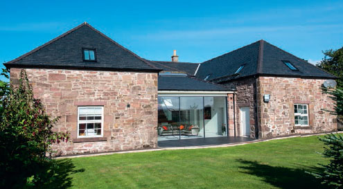 The two wings of this characterful coach house in Laurencekirk, Aberdeenshire have been linked with a stunning glazed extension. The new structure replaces the conservatory that previously occupied the building’s courtyard, creating a striking contrast to the original stonework on either side. The floor-to-ceiling glass element has established a seamless connection between indoors and out, as well as forming a sun-drenched central atrium within the charming period property.