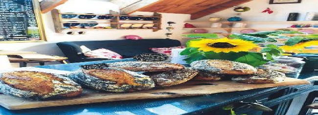 CLOCKWISE FROM THIS PICTURE Grenen, at the meeting of the seas; there’s plenty more fish and surfing, too; daily bread at Keramikafé; on the harbour, Skagen Fiskerestaurant combines fish and the arts – as seen in this vintage poster