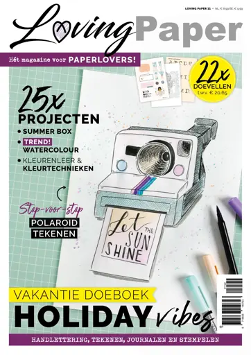 Loving Paper 11 is hét vakantie doeboek en staat helemaal in het teken van holiday vibes! In deze uitgave vind je projecten om tijdens de vakantie mee aan de slag te gaan. Denk aan getekende ansichtkaarten, zelfgemaakte boekenleggers, kleurplaten en een vakantieboekje om herinneringen in te bewaren.