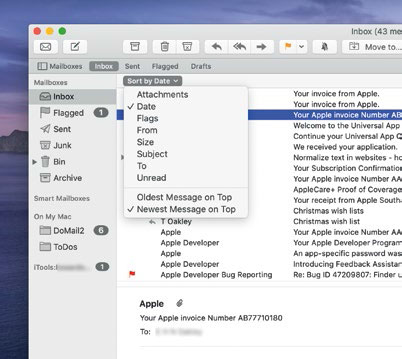 > Mail in Catalina has lost some features, among them the management of column widths and sorting mail by different columns. There’s no way to work around this, or to run an older version. Hopefully Big Sur will fix things.