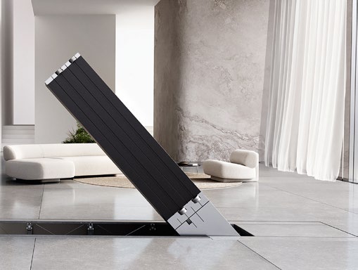 TV stands are so last year. What you want is a hole in your floor to hide your telly till it’s home movie time.
