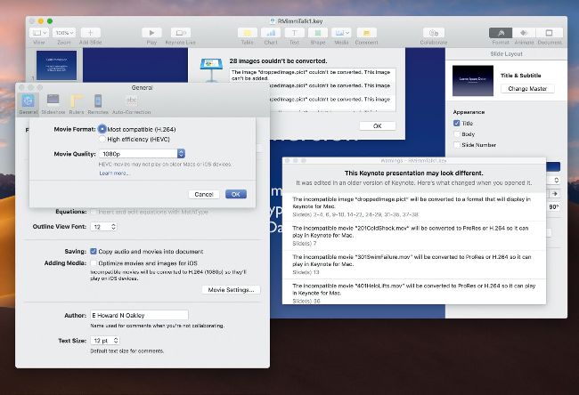 Keynote and Apple’s other Mojave apps can convert media from unsupported 32-bit QuickTime formats, but can’t do that in later macOS.