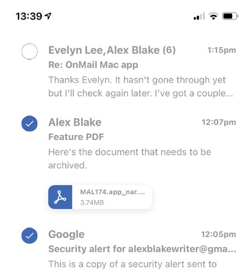 Long press an email in your inbox to select multiple messages, then triage them however you like.