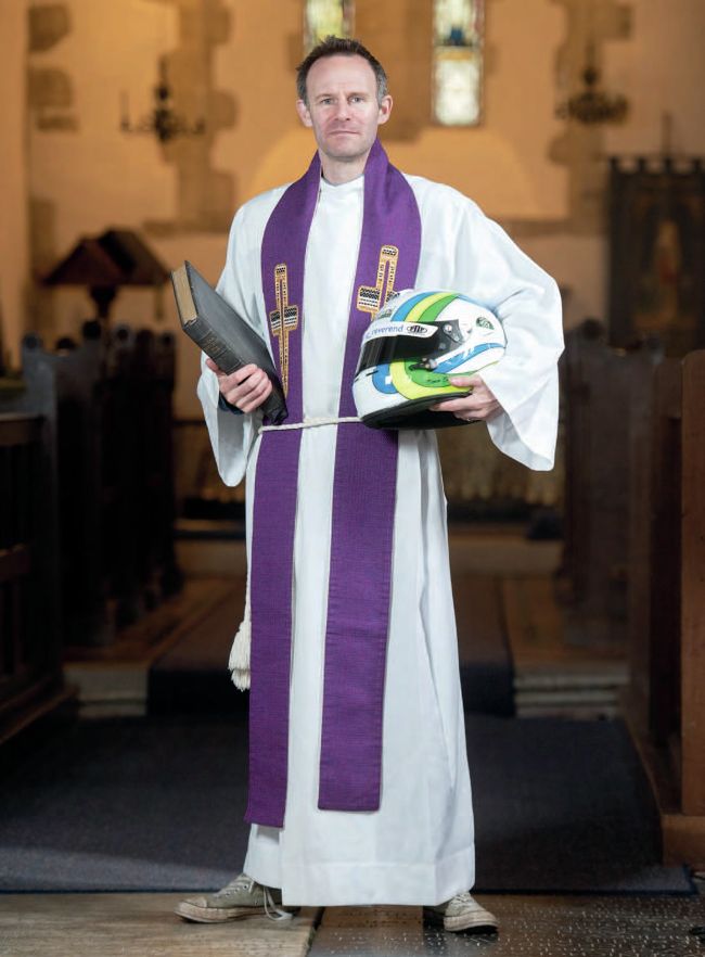 When not busy taking care of the 12 churches he’s responsible for in and around the Hampshire village of Upton Grey, the 42-year-old father of three can be found pedalling a Lotus Elan at race circuits in the UK and Europe wearing the Nomex-clad guise of his highly competitive alter ego.