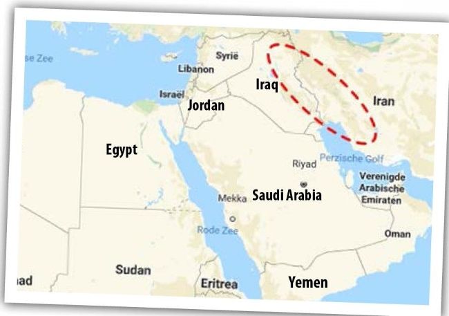 The approximate distribution of the Iraqi spiny-tailed lizard is highlighted here in red. Map courtesy of the author