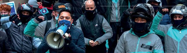 Get off your bike! Striking Deliveroo drivers in the City this spring