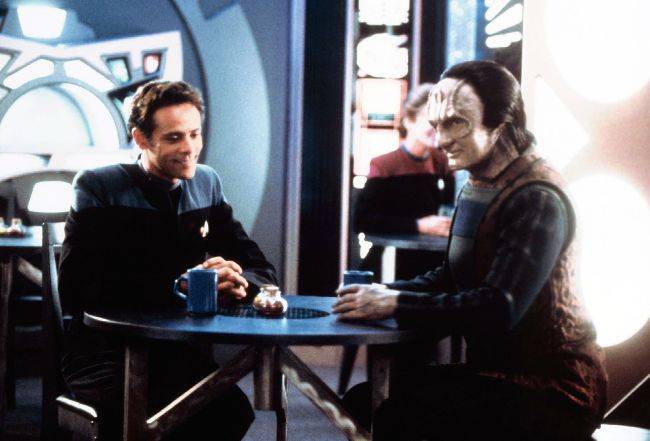Elim Garak gets cosy with Dr Julian Bashir.