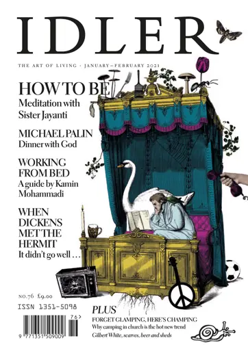 Featuring our guide to working from bed, the ultimate meditation lesson with Sister Jayanti, Michael Palin's dinner with God, plus a little known Dickens story and all a out "champing" or camping in church