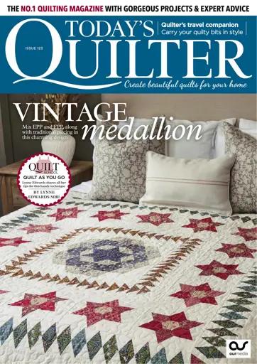 Discover how to carry your quilting to new heights with vibrant designs, including a charming mix of EPP and FPP in a captivating medallion quilt. Plus, join Lynne Edwards MBE as she guides you through essential quilting techniques.