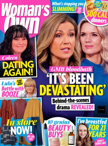 Dive into the latest issue of Woman's Own, where drama unfolds in the GMB bloodbath and Lulu opens up about her battle with booze. Plus, tackle your slimming goals with our essential test, indulge in 10 genius beauty buys, and find inspiration to take on dating again. Join Coleen in her own kitchen with 500-calorie dinners! Don’t miss the heartfelt stories of motherhood and resilience.