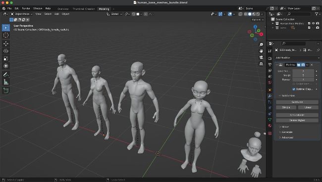For this Q&A we used the free asset pack of human meshes that can be downloaded from the Blender website