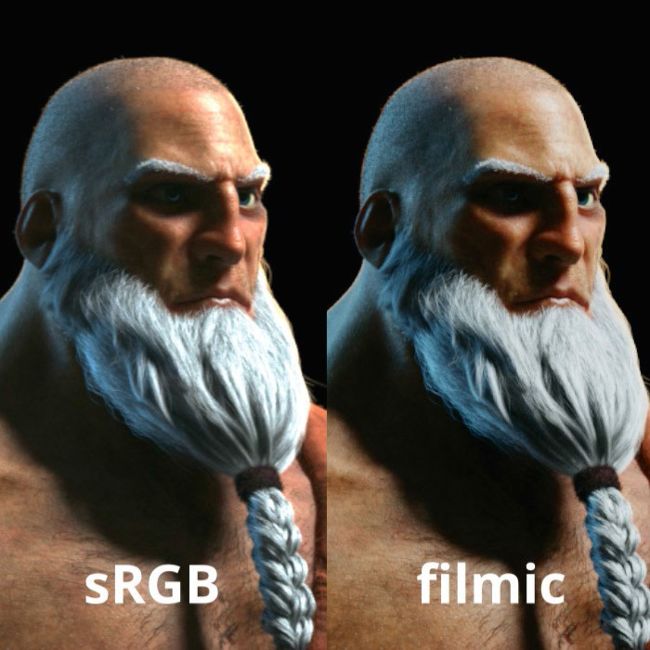 By tone mapping using ‘filmic’ curve interpolations, you can create a far more realistic final look for your film. What basically happens under the hood is a Reinhard filter is combined with an S-Curve, giving an image contrast without blowing it out. The process gets rid of any unwanted oversaturated highlights, making final frames more pleasing to the human eye. I especially enjoy the way it handles skin tones, as seen below. Tom Hankins, Colorbleed Animation Studios