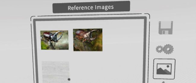 Collect any reference imagery you might need and put it into the Gravity Sketch folder on your PC (usually Docs>Gravity Sketch>Reference images). Any JPGs or PNGs that are saved in that folder will appear in your interface. If needed, add them to the scene from the Reference Images icon on the non-dominant hand. You can add as many images as you need for the project and either hang them in the air in front of you or anchor them to the model you are working on. That way they move with the image as you are working.