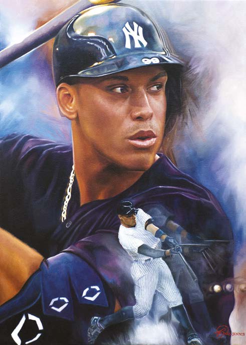 The result is a striking portrait of Jackie Robinson that balances the legend’s intense pride with an approachable look he often carried, and that the artist wanted to convey. “He goes beyond baseball,” Jennis says. “It’s more than just his contributions to the game. It’s about his contributions to society and how that led to some important changes.”