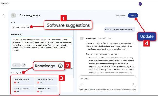 Robert used Gemini’s free Gems feature to create and customise his own AI chatbot