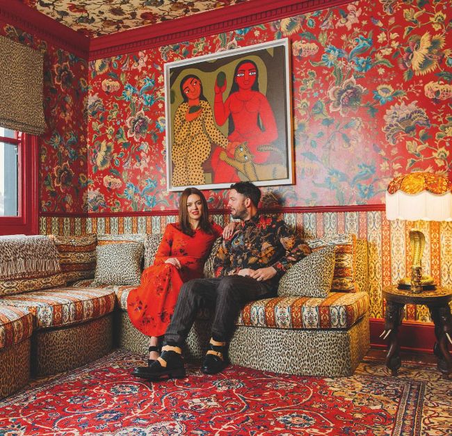 In a world of minimalist design, Javvy Royle and Frieda Gormley, the husband-and-wife team behind interiors brand House of Hackney, sought the opposite. “We were looking to decorate our house and although we were two people working in a creative industry, we couldn’t find wallpaper, print, colour or texture for the space,” says Frieda.