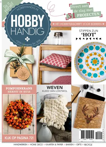 Met een prachtige zomer nog in het achterhoofd, kijken we met Hobbyhandig 209 toch alweer een beetje vooruit naar de herfst. Brei bijvoorbeeld een behaaglijk ajourvest of maak een lekker wollig vloerkleed. En voor aan de deur hebben we een hele gave pompoenkrans voor je. En ook herfstdieren mogen in deze uitgave niet ontbreken. Zo naai je op je iPad hoes een hert en maak je twee handige organizers met kurk en een vossenprint. Ben je gek op printjes en stippen? We laten je zien hoe je een waszak en stervormig kussen met de meest leuke motiefjes maakt.